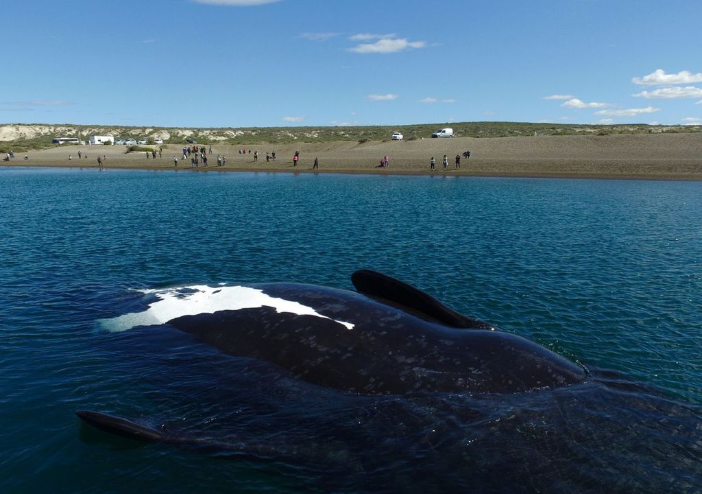 Miles de vecinos, visitantes y turistas se acercan para disfrutar el espectáculo natural que brindan las ballenas Franca Austral en la temporada.
