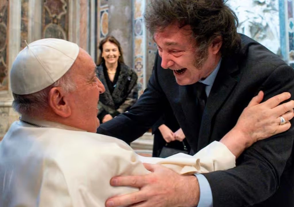 | El afectuoso saludo entre el Presidente Javier Milei (@JMilei) y el Papa Francisco (@Pontifex) en la Basílica de San Pedro. pic.twitter.com/k0odJOLvqt