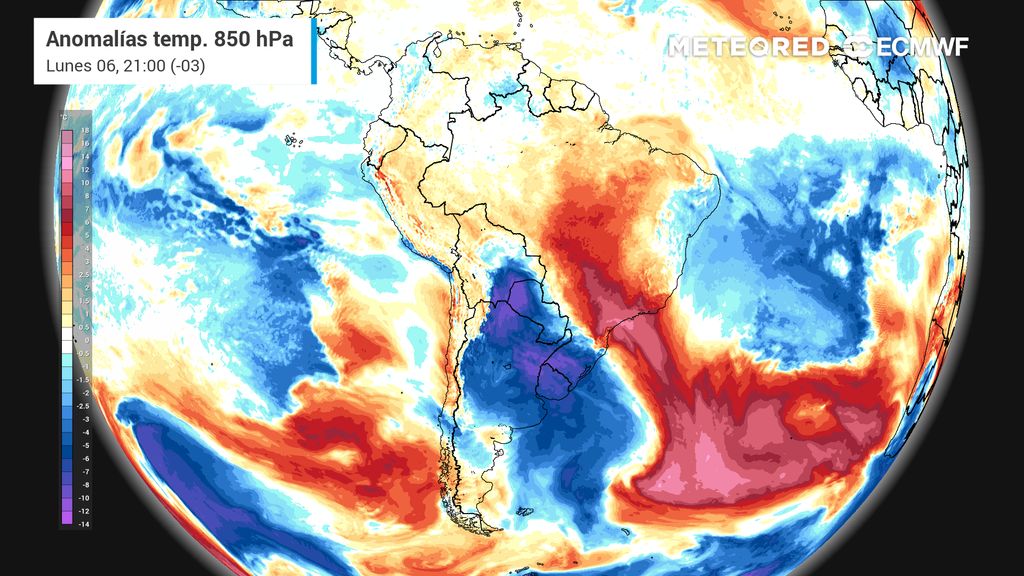 Actualmente, un profundo sistema de bajas presiones en niveles medios y altos de la atmósfera cruza la cordillera de los Andes. Se trata de una vaguada que forzará la formación de un frente frío en el norte de la Patagonia, separando de manera más clara las dos masas de aire.