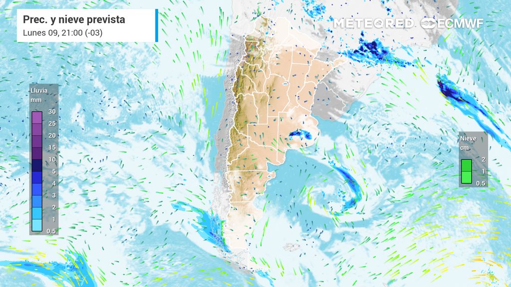 Para el próximo martes ya se prevé un escenario opuesto al actual, con valores de temperatura superior a los parámetros medios tanto en la zona norte como en la región Pampeana y Cuyana. De hecho, los valores máximos previstos serían superiores a los 30 ºC en toda la franja central y por encima de los 35 ºC en el sector norte del país.