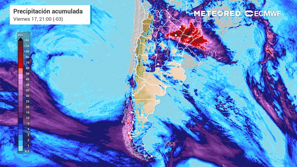 Las tormentas podrán presentarse con importante actividad eléctrica, caída de granizo en forma puntual y ráfagas de viento que podrían alcanzar los 90 km/h. Además, se esperan acumulados de precipitación entre 40 mm y 80 mm, con valores localmente superiores que podrían llegar o incluso superar los 100 mm en el noreste argentino.