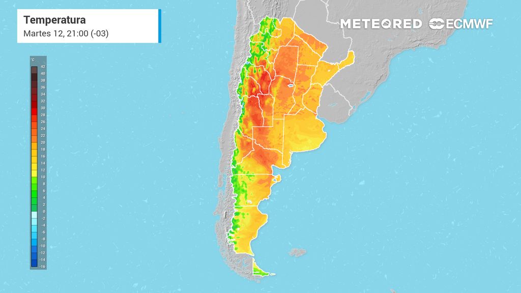 En tanto, el resto del centro y norte del país se mantendrá con valores inferiores a los promedios, particularmente el norte argentino, que presentará temperaturas máximas que no superarán los 30 ºC, valor que, para este período del año en esas latitudes, son marcas muy inferiores a los promedios.