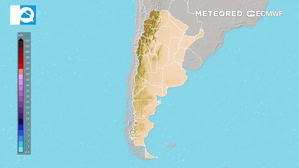 En contraste, la franja central del territorio nacional presenta anomalías negativas, reflejando acumulados de precipitación por debajo de los valores normales. Esto se debe a que el sistema frontal activará las lluvias principalmente desde el centro hacia el norte, dejando al sur y oeste de la región Pampeana con escasa actividad.