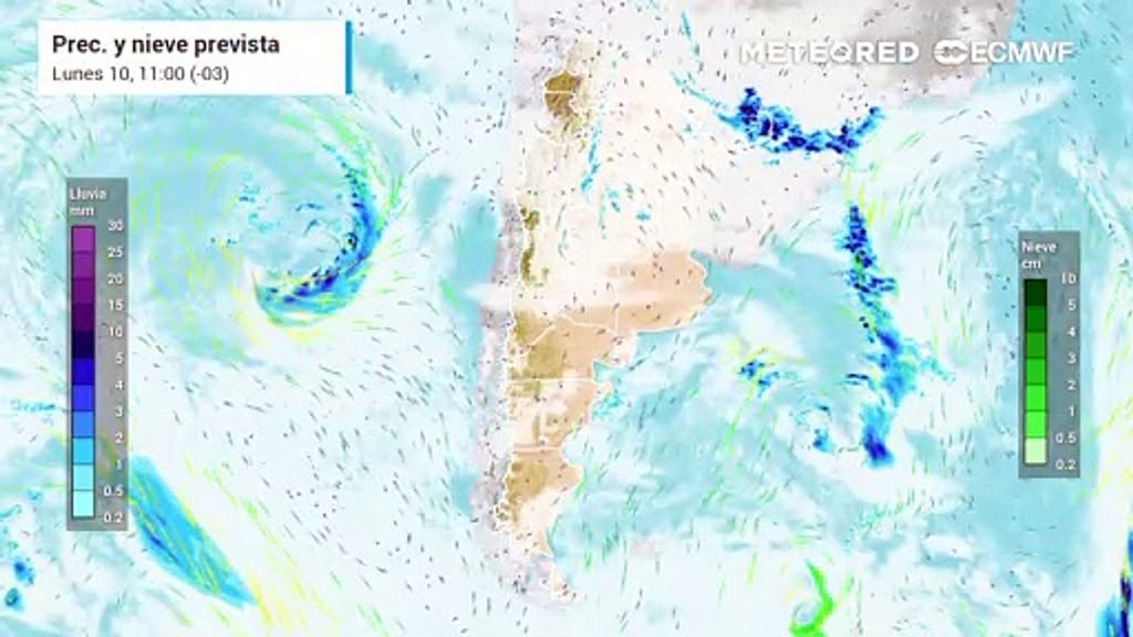 Lunes a martes, con frío extremo en el sur patagónico y lluvias y tormentas en el centro y norte de Argentina