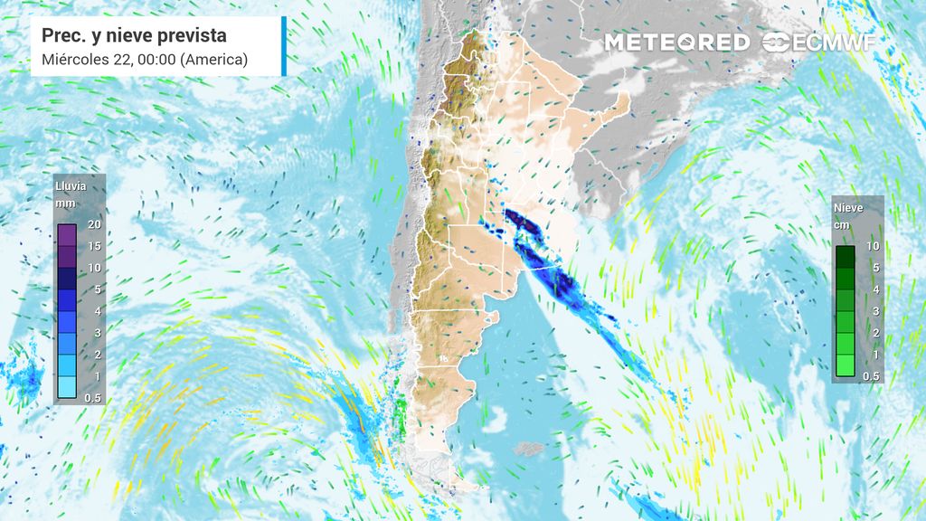 La cordillera del sur argentino, como así también Tierra del Fuego, presentarían nevadas aisladas, con fuertes vientos del sudoeste afectando progresivamente el viernes toda la Patagonia.