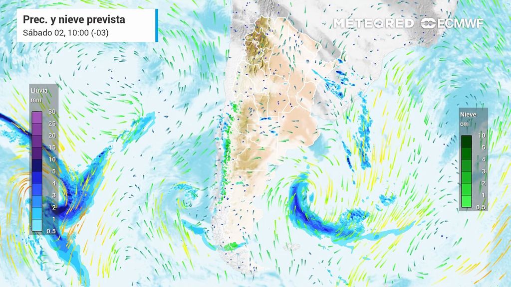 Fin de semana con alertas meteorológicas en Argentina: nieve, viento y tormentas durante el sábado y domingo