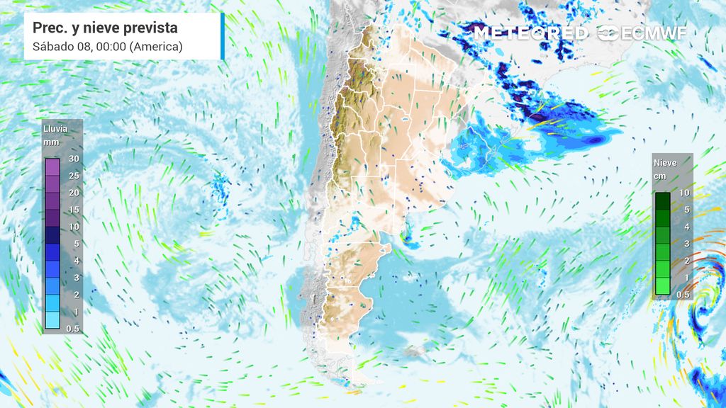 El fenómeno estará acompañado por ráfagas intensas, caída de granizo y actividad eléctrica frecuente. Según las proyecciones del modelo ECMWF, los eventos más destacados se concentrarán entre la mañana y la tarde del viernes, cuando las condiciones se tornen más inestables y se combinen los factores de humedad, temperatura y dinámica de niveles medios favorables para el desarrollo de las tormentas.