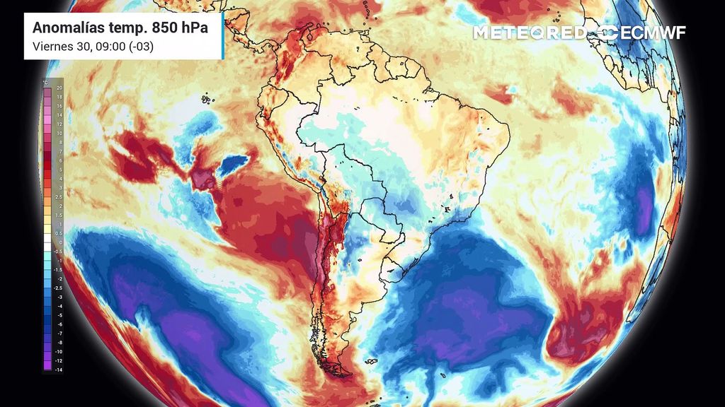 El frente frío mencionado no tendrá el suficiente empuje para recorrer el centro y norte de Argentina a comienzos de la próxima semana, sino que más bien continuará con una tendencia estacionaria provocando lluvias y tormentas aisladas en sectores de la región Pampeana. Recién hacia el miércoles podría darse un alejamiento al este, sin mayor afectación en el norte argentino.