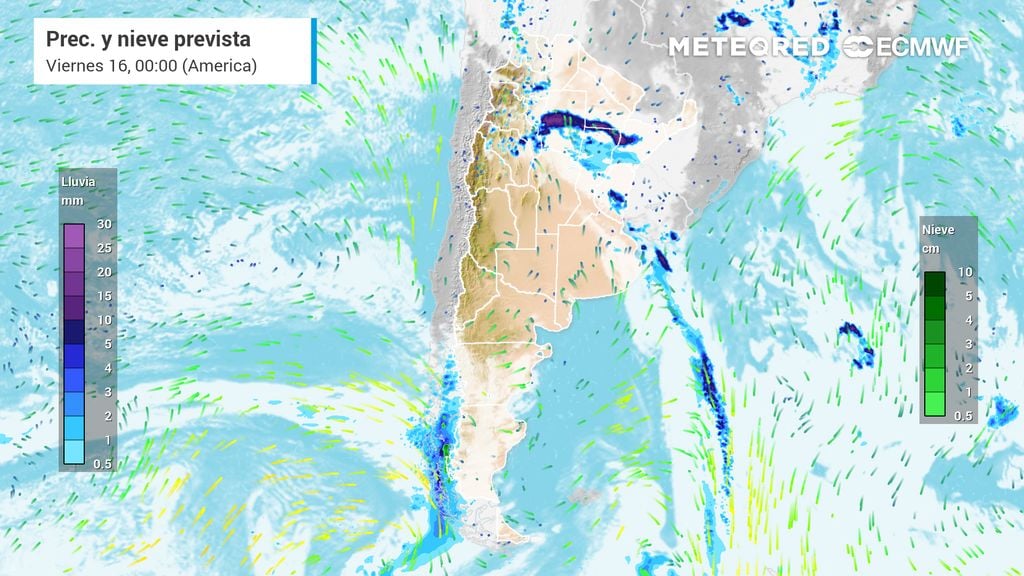 Mientras tanto, la franja norte del país sentirá el avance del sistema frontal con lluvias y tormentas de variada intensidad, algunas fuertes especialmente en la primera mitad del día, afectando provincias como Tucumán, Salta, Jujuy, Formosa, Chaco, Corrientes y Misiones.