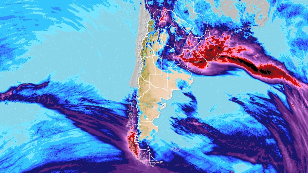 A medida que avanzan las horas, el sistema se va trasladando hacia el este-noreste, por lo que todavía generará precipitaciones sobre parte del Litoral y Uruguay, junto al extremo sur de Brasil.