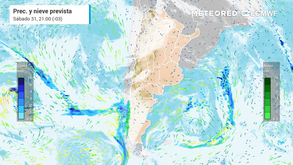 Algunas nevadas y lluvias aisladas en el extremo sur argentino.