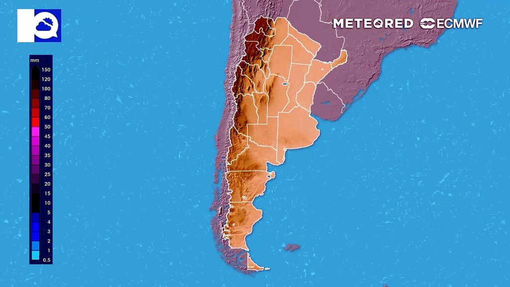 En la región patagónica, especialmente sobre la franja cordillerana, se registrarán precipitaciones abundantes. El flujo del oeste cargado de humedad proveniente del Pacífico impactará contra el relieve andino, generando lluvias persistentes e intensas, con acumulados significativos en sectores de Neuquén hacia el sur.