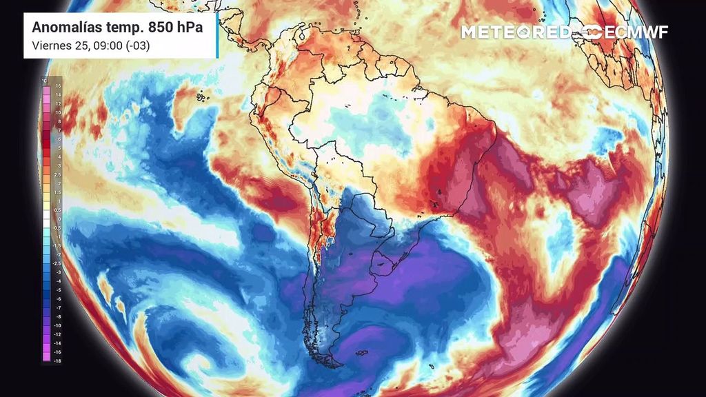 El ingreso de aire frío seguirá acentuándose en las próximas horas y es probable que La Pampa y el centro y sur de la Provincia de Buenos Aires alcancen valores mínimos el sábado a primera hora de hasta -3 °C. Hacia el sur de Cuyo y el nor/noroeste patagónico, las heladas serán mucho más intensas, y volverán a registrarse marcas en el rango de -5 a -10 °C.