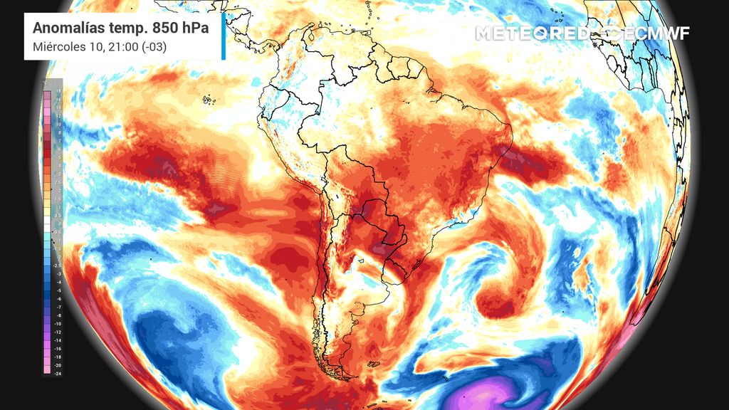 Hacia el centro-este de la Argentina, aumenta la probabilidad de precipitaciones el miércoles con el paso del frente frío. Las mayores probabilidades de lluvia se concentran sobre el centro y sur de la provincia de Buenos Aires, en tanto que, sobre la parte noreste y la Capital Federal, la chance es muy baja durante la tarde.