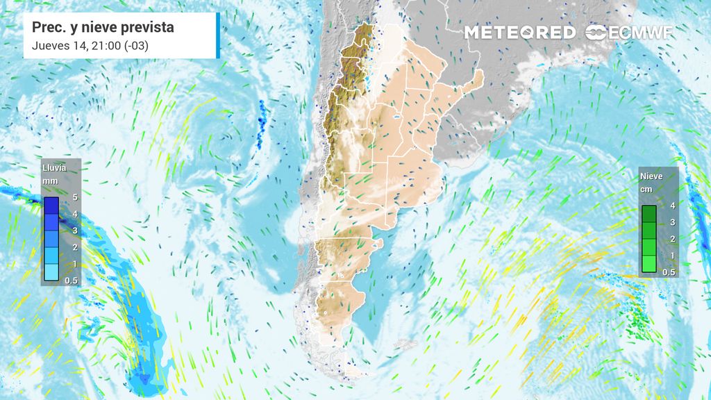 En las últimas horas, una masa de aire frío ha comenzado a desplazarse desde el norte de la Patagonia hacia la región central de Argentina. Este fenómeno está provocando un cambio en la dirección de los vientos, que ahora soplan del sector sur, generando un importante descenso de las temperaturas y condiciones de inestabilidad. Si bien por el momento las precipitaciones son aisladas y de escasa intensidad, la abundante nubosidad cubre gran parte del cielo en sectores del norte patagónico y sur del área pampeana.