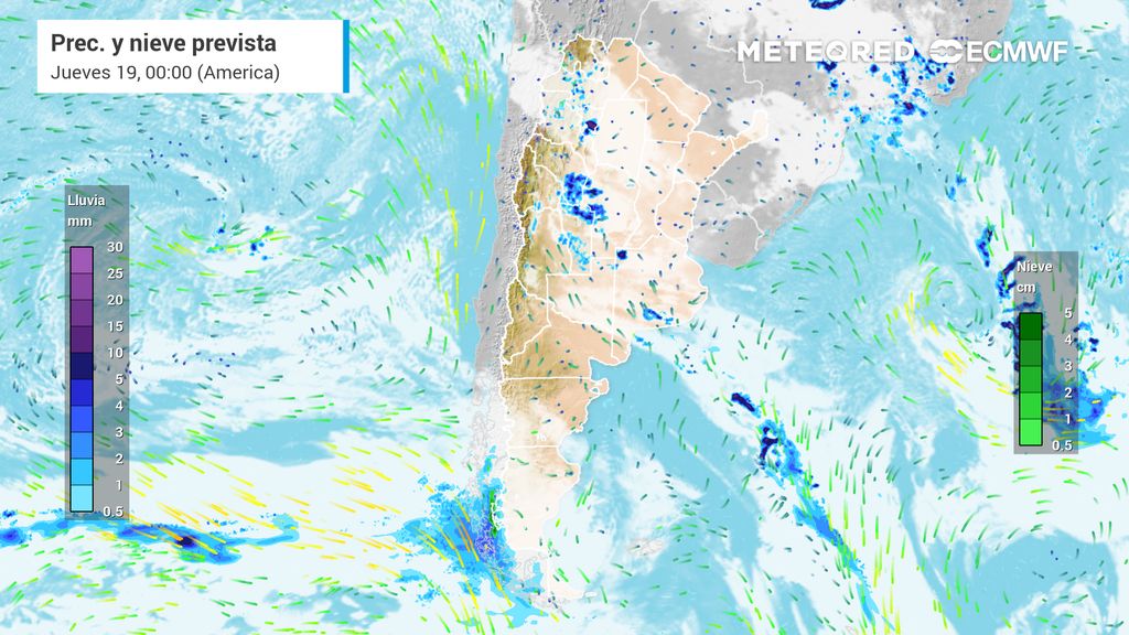 En términos de acumulados, se estiman valores generales entre 40 mm y 70 mm, aunque de manera puntual podrían superarse ampliamente, especialmente bajo núcleos convectivos más desarrollados. Esta distribución será heterogénea, con áreas que podrían recibir montos significativos y otras donde los registros resulten más acotados.